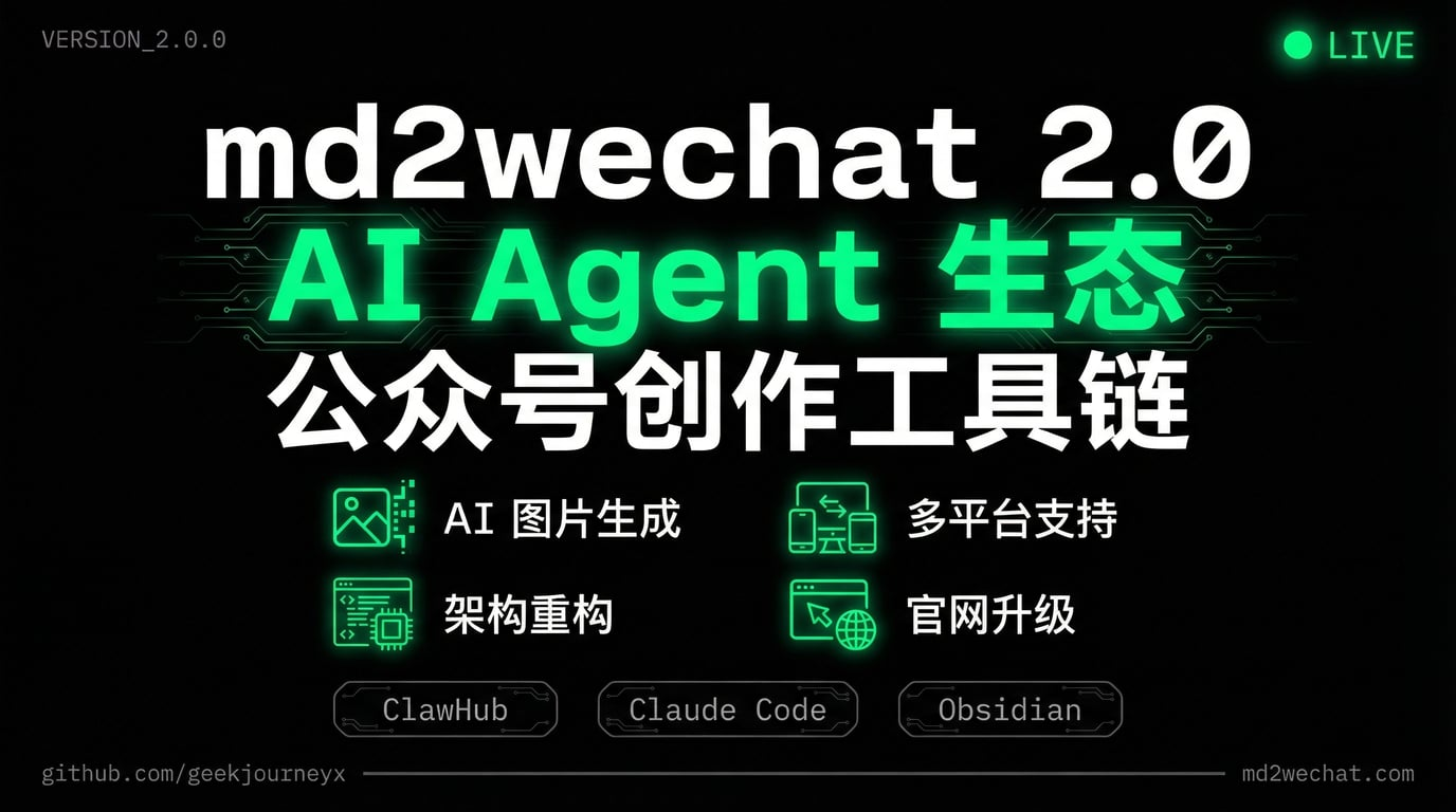 md2wechat is no longer just a Markdown-to-WeChat formatting utility. It is becoming a more complete content workflow for AI Agents.