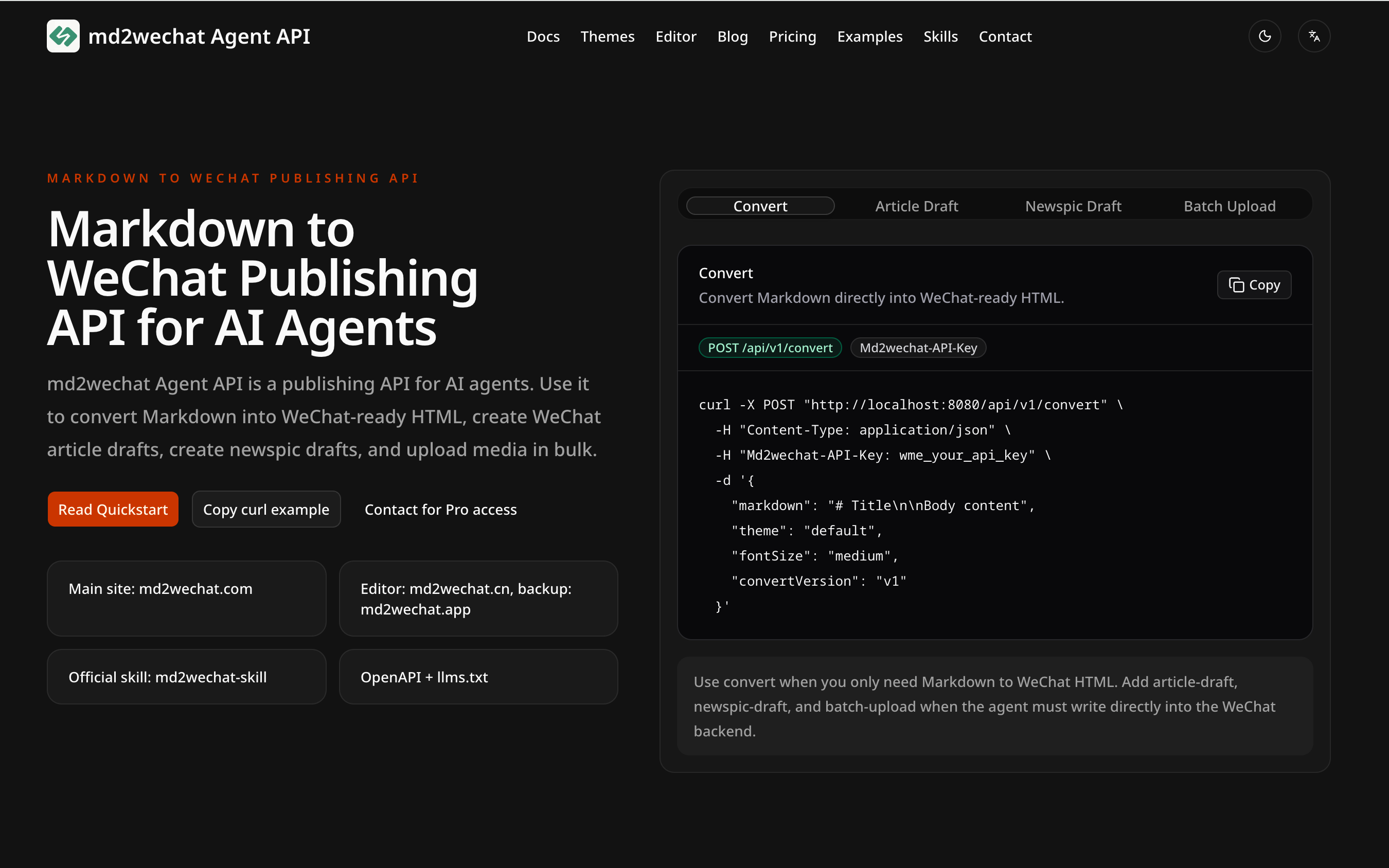 md2wechat 2.0 moves closer to a real Agent-facing publishing workflow instead of stopping at formatting.