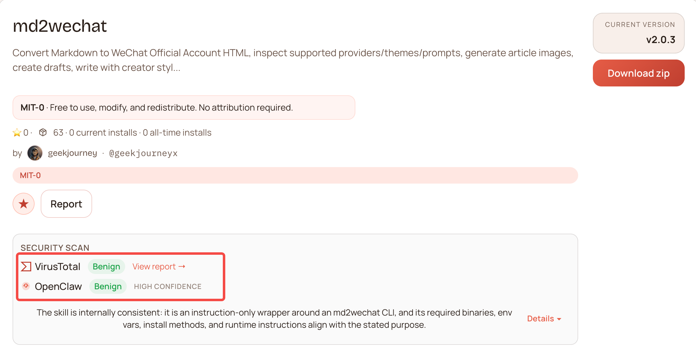 I recently listed md2wechat 2.0 on ClawHub, the official OpenClaw skill directory.